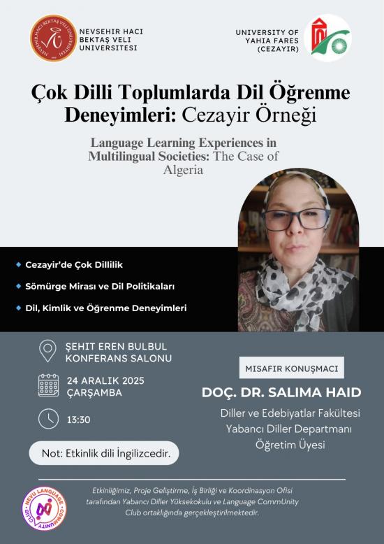 - Proje Geliştirme, İş Birliği ve Koordinasyon Ofisi "Language Learning Experiences in Multilingual Societies: The Case of Algeria” adlı bir konferans düzenliyor